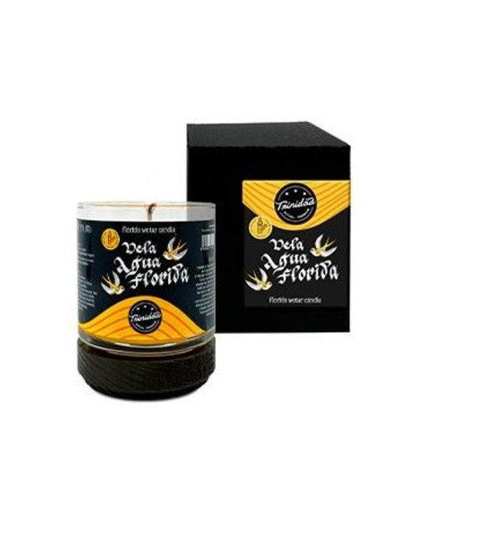Vela de Agua Florida con soporte de madera y piedras, Trinidad